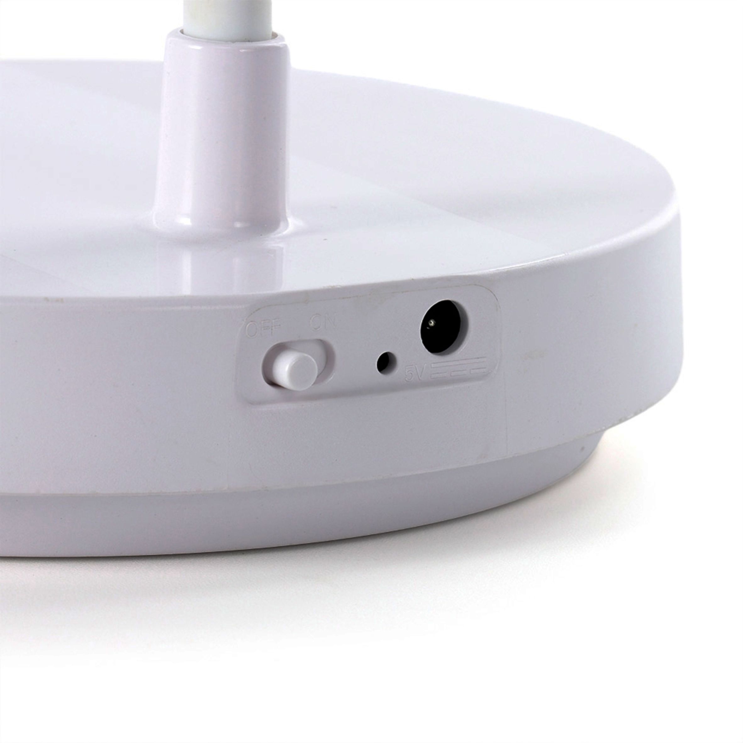 Luminária articulável em led recarregável e funcionamento touch, material plástico. Contém três estágios de iluminação com regulagem de intensidade touch: luz fria (branca), luz quente (amarela) e luz mista (branca e amarela). Base com botão para ligar e desligar. Acompanha uma bateria de lítio e cabo USB para carregamento.