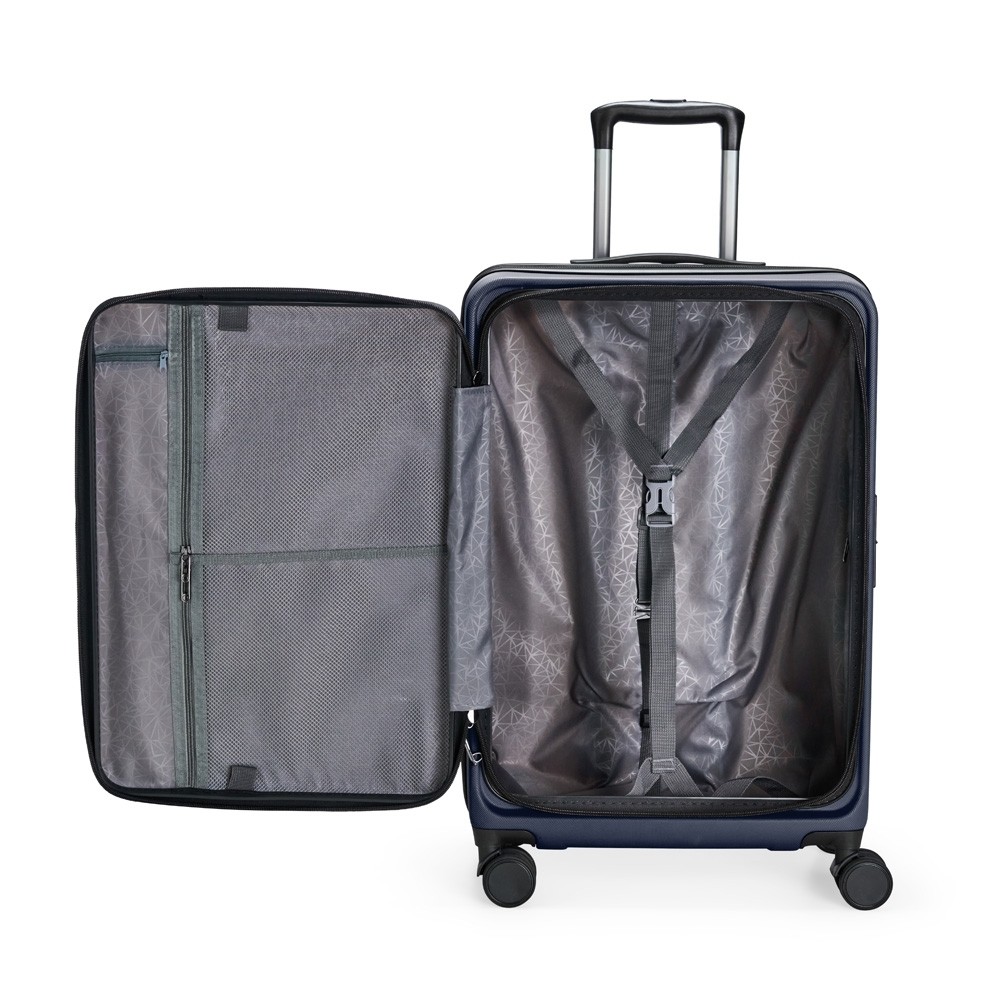 Mala de 66 litros, resistente e funcional! Produzida em plástico ABS, conta com cadeado numérico TSA embutido para mais segurança. Seu design inteligente traz abertura frontal com divisórias internas de zíperes e cinta compressora para roupas. Precisa de mais espaço? O zíper externo expansível se encarrega de ampliar a capacidade da mala. Para facilitar o transporte, possui puxador retrátil de 3 estágios, duas alças de mão, apoios e ganchos laterais e rodinhas 360º, proporcionando mobilidade total. Acompanha plaquinha metálica grafite personalizável.